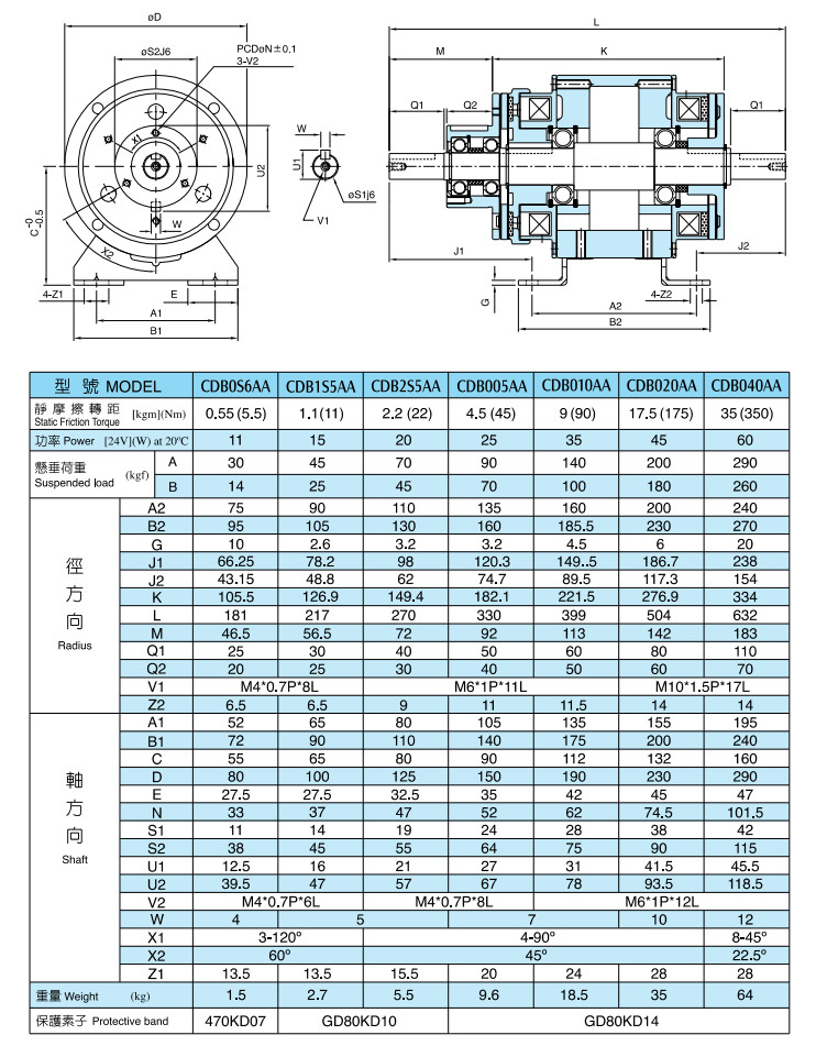 CDB0S6AA,CDB1S5AA,CDB2S5AA,CDB005AA,CDB010AA,CDB020AA,CDB040AA外露式電磁離合器剎車(chē)器組合體