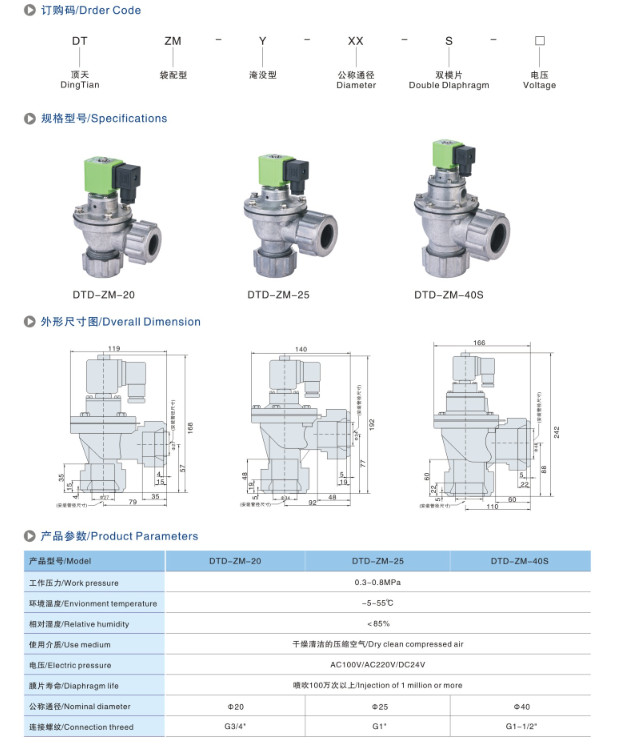 DTD-ZM-20,DTD-ZM-25,DTD-ZM-40S,直角式快連脈沖閥