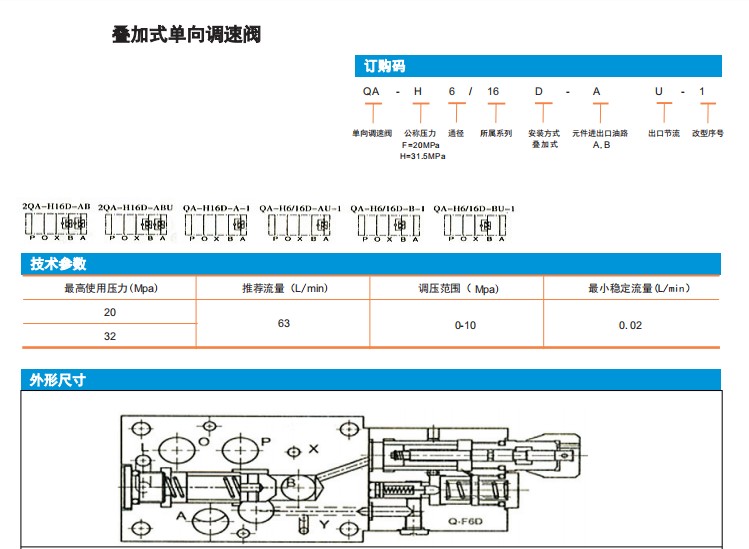 2QA-H16D-AB,2QA-H16D-ABU,QA-F16D-A-1,QA-F6/16D-AU-1,疊加式單向調速閥