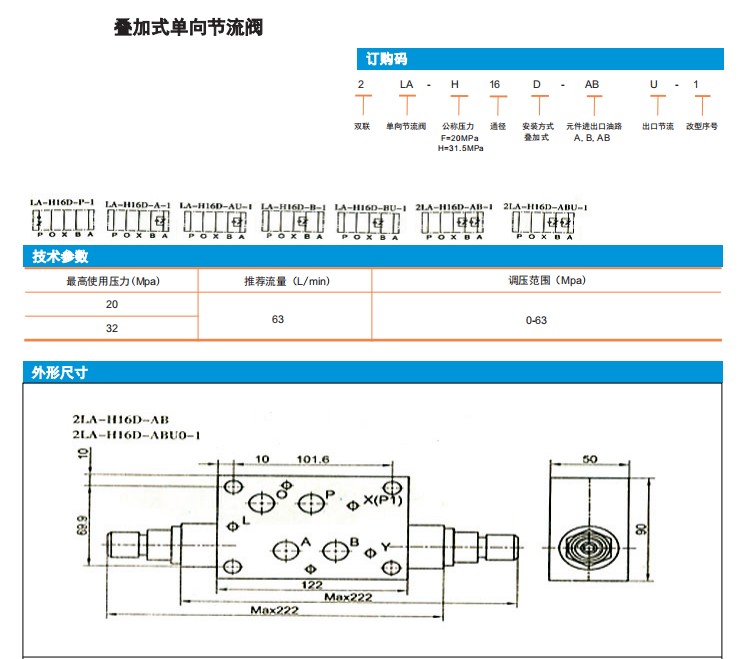 LA-H16D-P-1,LA-H16D-A-1,LA-F16D-AU-1,2LA-H16D-ABU-1,疊加式單向節流閥
