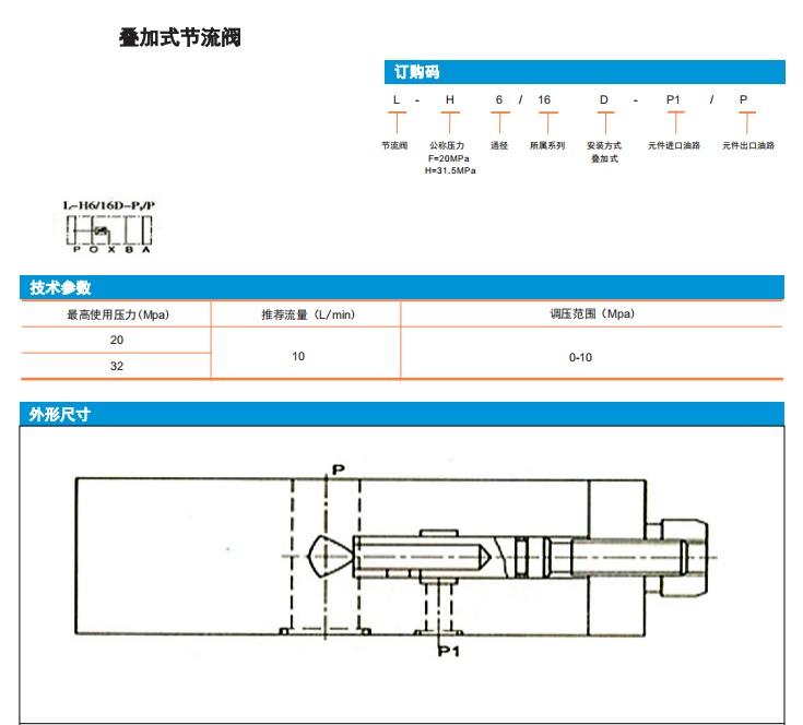 L-H6/16D-P1/P,L-F6/16D-P1/P,疊加式節流閥