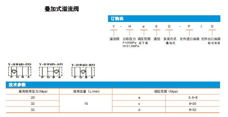 Y-Ha6D-P/O,Y-Hc6D-B/O,Y-Fa6D-A/O,Y-Fc6D-B/O,Y-Fd6D-B/O,疊加式溢流閥