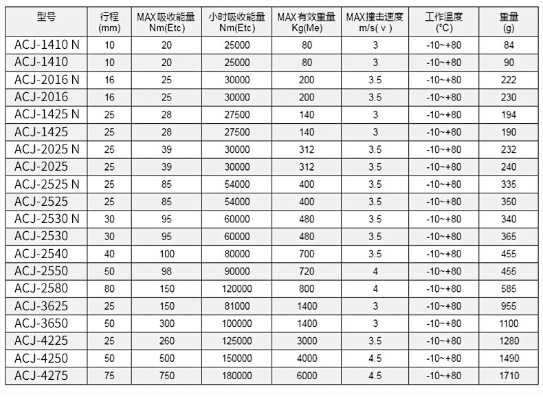 可調式2550油壓緩沖器ACJ1007,ACJ1210,ACJ1412,ACJ2020,ACJ2550,ACJ2725,ACJ2750,ACJ3325,ACJ3350,ACJ3625,ACJ3650,ACJ4225,ACJ4250,ACJ4275阻尼器