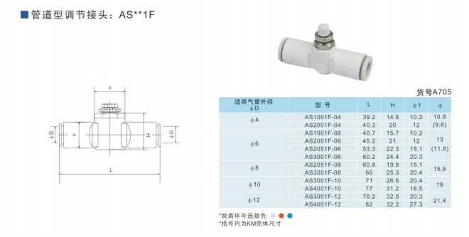 SMC型管道型調節接頭AS1001F-23,AS1001F-03,AS1001F-04,AS1001F-06,AS2001F-04,AS2001F-06,AS2051F-06,AS2051F-08,AS3001F-06,AS3001F-08,AS3001F-10,AS3001F-12,AS4001F-10,AS4001F-12,