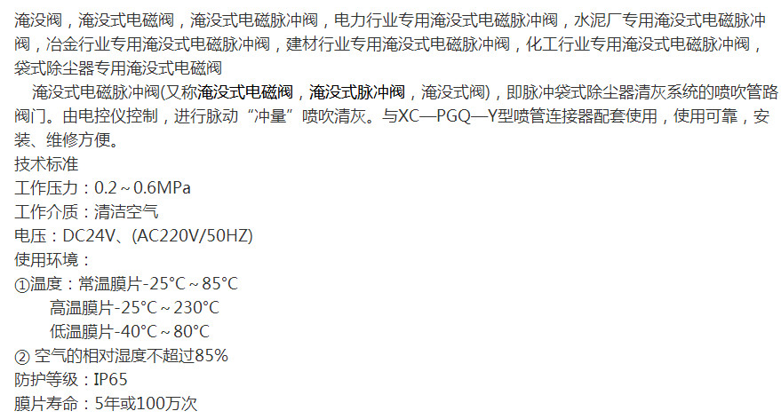 上海袋式型淹沒(méi)式脈沖閥DCF-Y-25,DCF-Y-40S,DCF-Y-50S,DCF-Y-62S,DCF-Y-76S,膜片