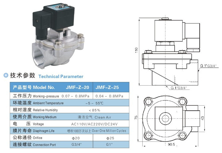 高原型直角式脈沖閥JMF-Z-20,JMF-Z-25,JMF-Z-35,JMF-Z-40S,JMF-Z-50S,JMF-Z-62S,JMF-Z-76S,膜片