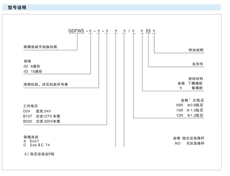GDFWS-03-D24,GDFWS-03-B127,GDFWS-03-B220,GDFWS-03-B220A/53,隔爆電磁手動(dòng)換向閥 GDFWS-03-D24A/53,GDFWS-03-B127A/53,GDFWS-03-B220A/53, GDFWS-03-D24C/53,GDFWS-03-B127C/53,GDFWS-03-B220C/53, GDFWS-03-D24ANO/53,GDFWS-03-B127ANO/53,GDFWS-03-B220ANO/53, GDFWS-03-D24CNO/53,GDFWS-03-B127CNO/53,GDFWS-03-B220CNO/53,
