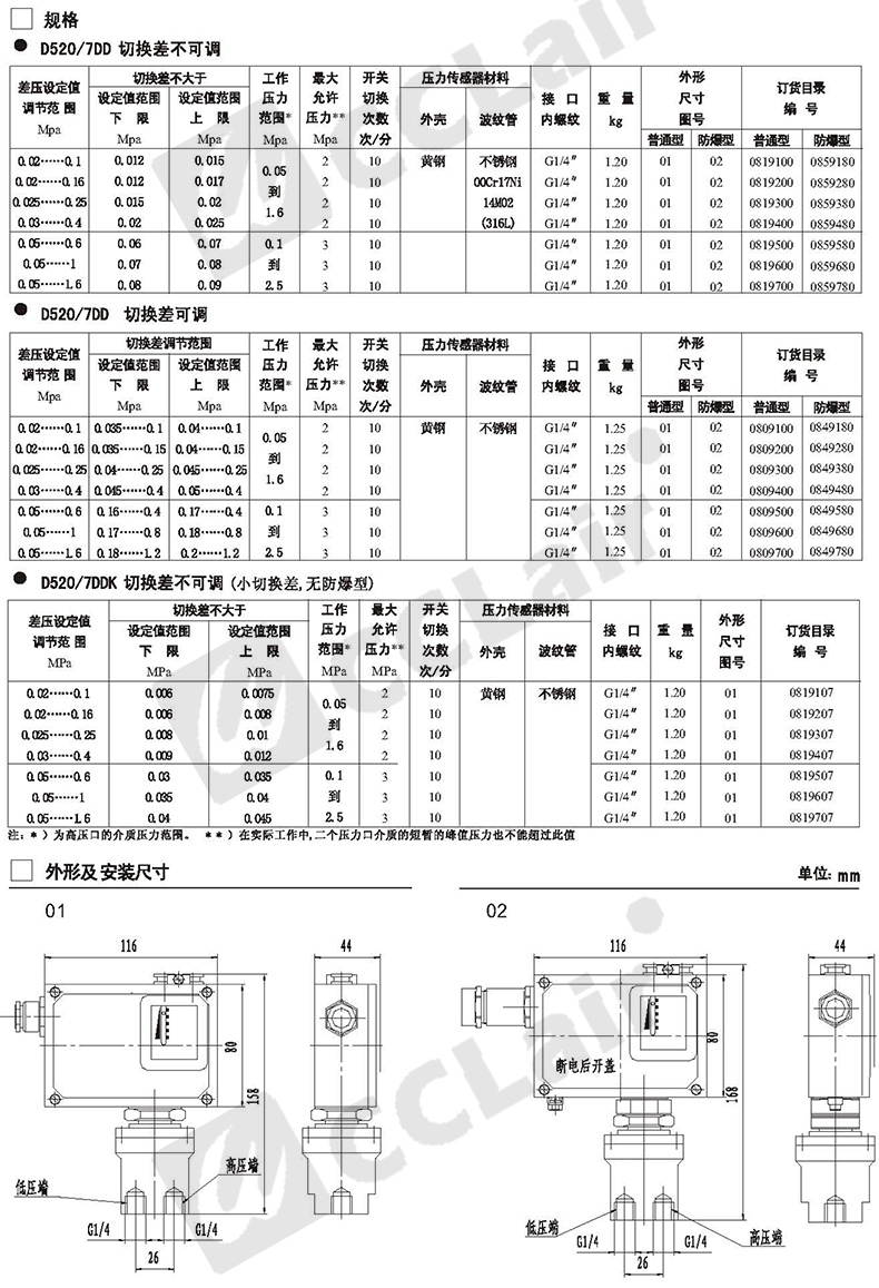 0819100,0819500,0809200,0809600,小切換差型差壓控制器普通 D520/7DD切換差可調 0809300,0809700,0809400,