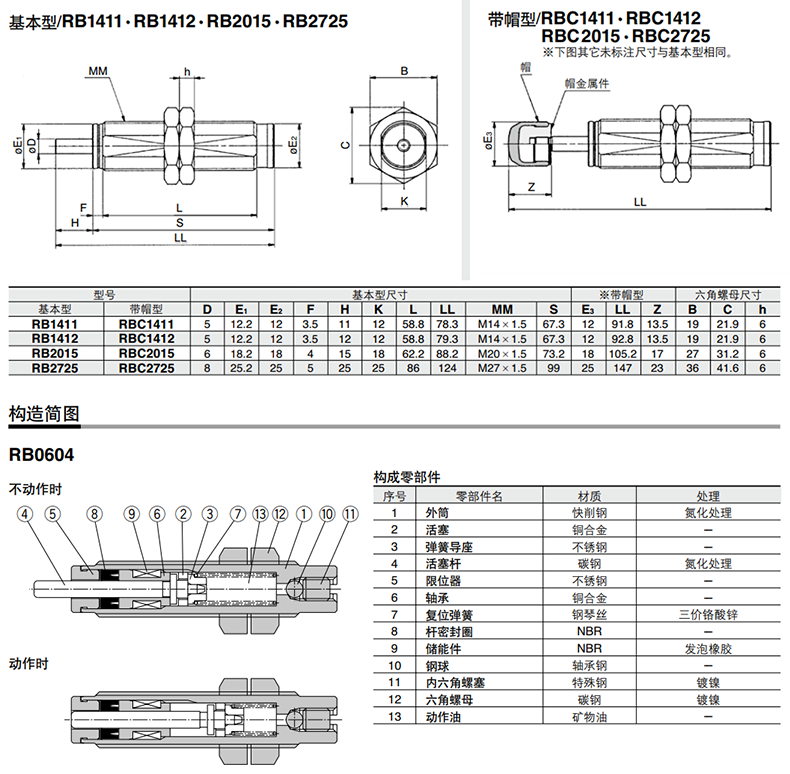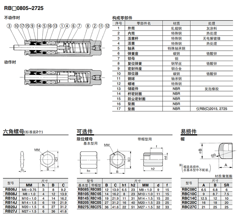 RB0604,RB0805,RB0806,RB1006,RB1007,RB1210,RB1411,RB1412,RB2015,RB2725,RB不帶帽緩沖器