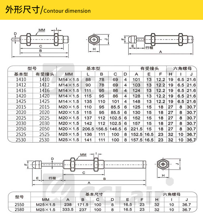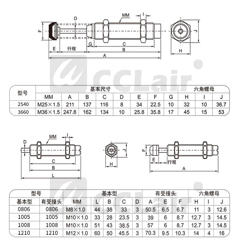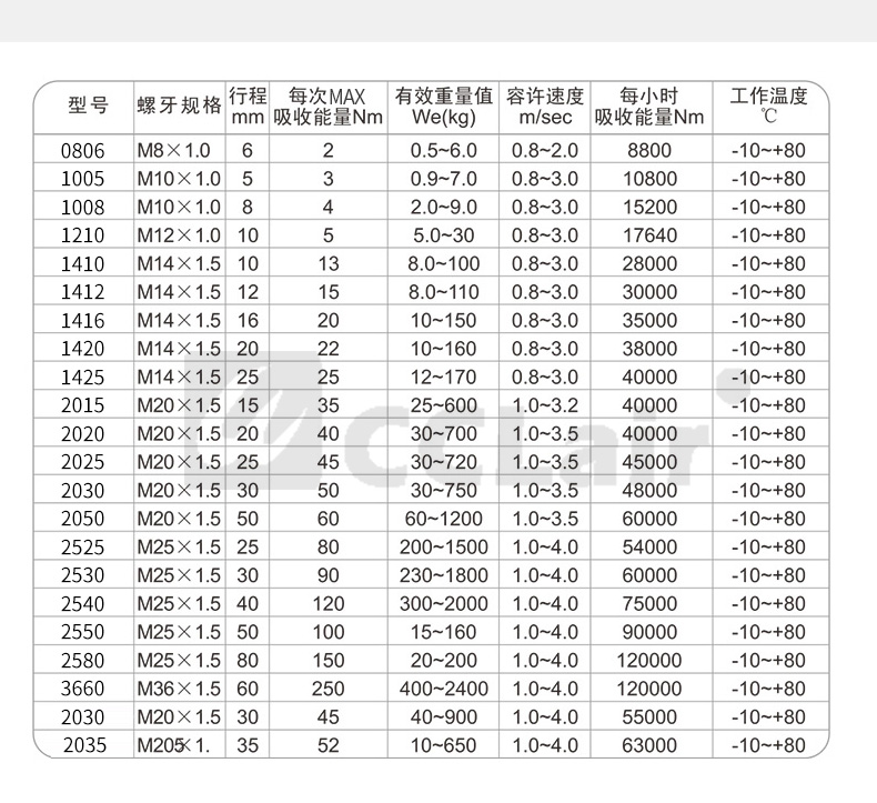 C-MAKC0806,C-MAKC1005,C-MAKC1008,C-MAKC1210,C-MAKC1412, C-MAKC2020,油壓緩沖器C-MAKC不可調
