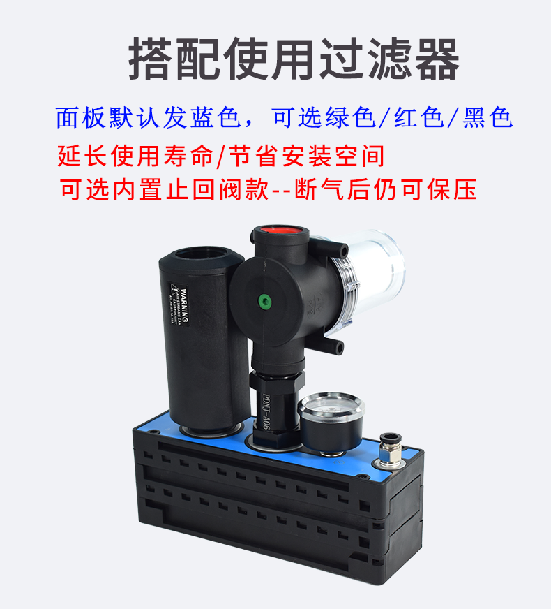 多級高真空型發(fā)生器的工作原理是利用噴管高速?lài)娚鋲嚎s空氣,?在噴管出口形成射流,?產(chǎn)生卷吸流動(dòng)。?這種工作原理使得噴管出口周?chē)目諝獠粩嗟乇怀槲撸?從而使吸附腔內的壓力降至大氣壓以下,?形成一定真空度。