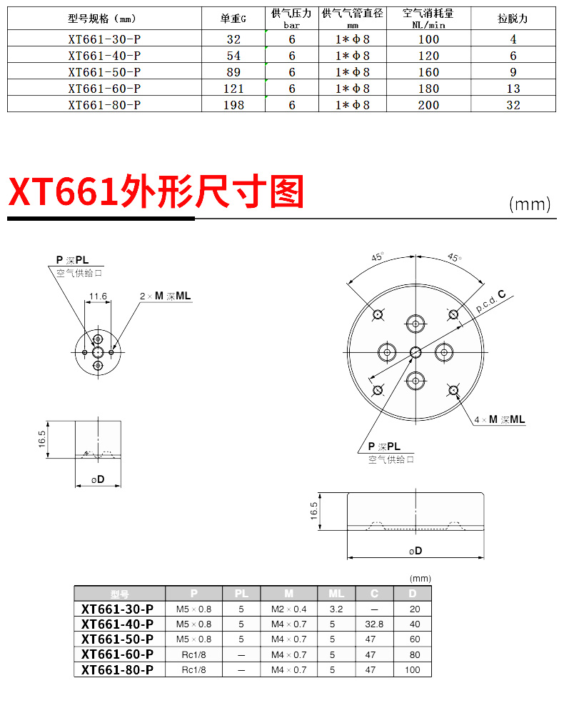XT661-30-P,XT661-40-P,XT661-50-P,XT661-60-P,XT661-80-P真空吸盤(pán)