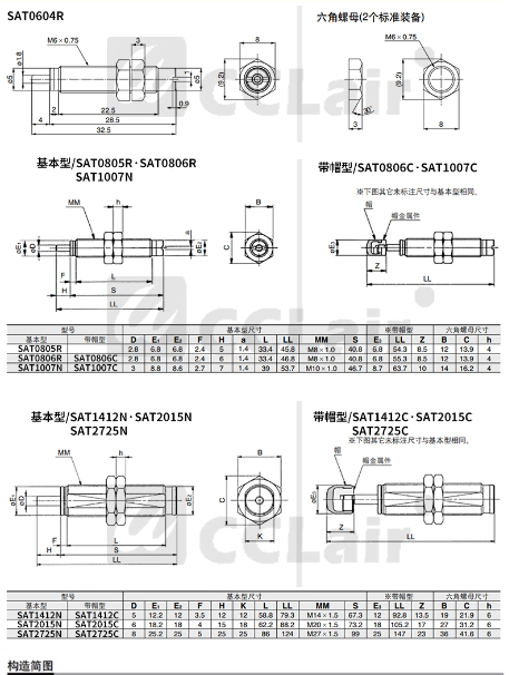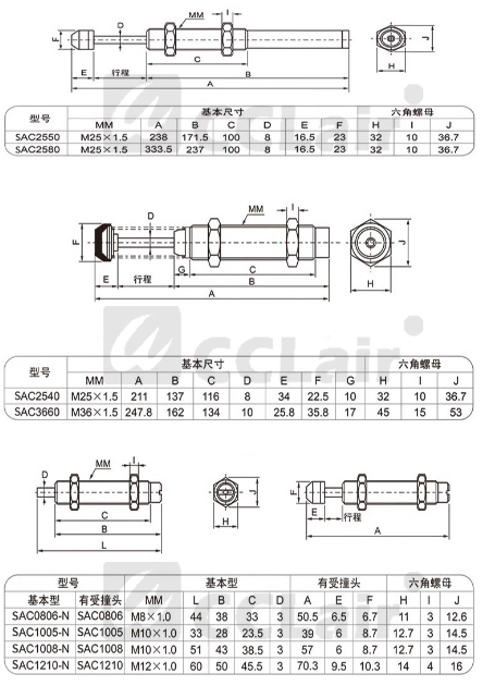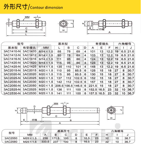 SAT-0604R,SAT-0806R,SAT-0806N,SAT-1007N,SAT-1210N,SAT-1412N,SAT-2015N,SAT-2525N,SAT-2725N,SAT-0806C,SAT-1007C,SAT-1210C,SAT-1412C,SAT-2015C,SAT-2525C,SAT-2725C,SAD-1410N,SAD-2016N,SAD-2525N,SAD-1410C,SAD-2016C,SAD-2525C,SAD-2540C緩沖器