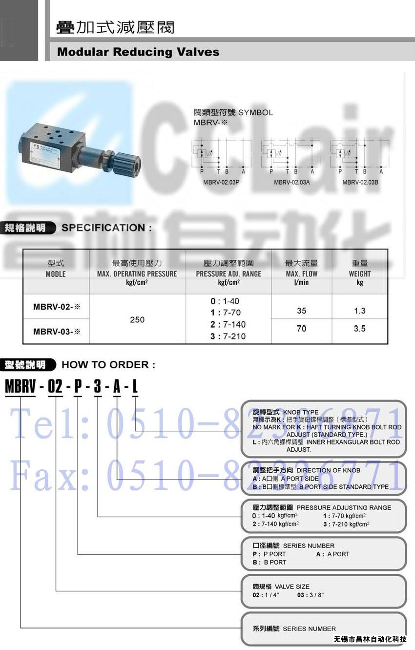 | MBRV-02-P-3-B-L, | 疊加式減壓閥 | |