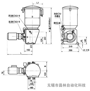 (3)雙泵帶電動(dòng)換向閥潤滑裝置外形尺寸