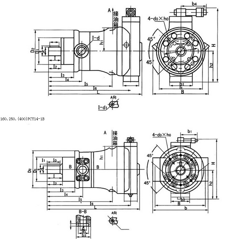 表示:排量為63毫升/轉,壓力為31.5MPa的手動(dòng)變量的缸體旋轉的軸向柱塞油泵。