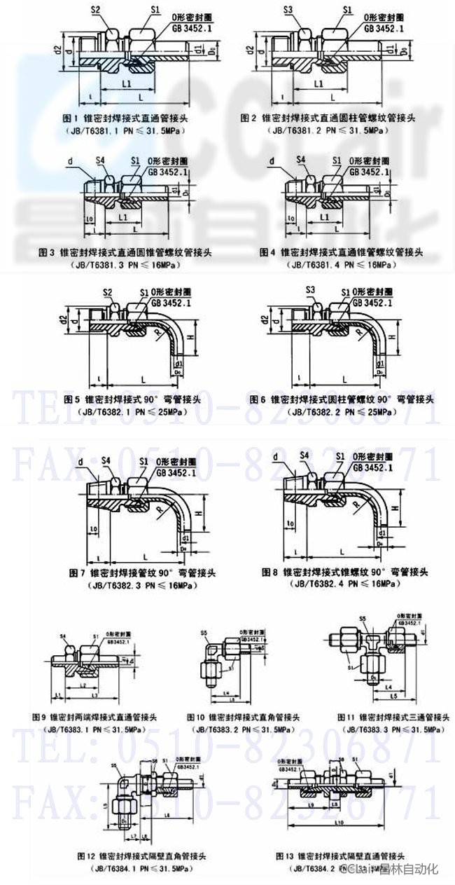 | a、管子外徑D0為20mm的錐密封焊接式直通管接頭: 管接頭20 JB/T6381.1-92 b、管子外徑D0為20mm的錐密封焊接式直通圓柱管螺紋管接頭: 管接頭20 JB/T6381.2-92 c、管子外徑D0為20mm的錐密封焊接式直通圓錐管螺紋管接頭; 管接頭20 JB/T6381.3-92 d、管子外徑D0為20mm的錐密封焊接式直通錐螺紋管接頭: 管接頭20 JB/T6381.4-92 e、管子外徑D0為20mm的錐密封焊接式90°彎管接頭: 管接頭20 JB/T6382.1-92 f、管子外徑D0為20mm的錐密封焊接式圓柱管螺紋90°彎管接頭: 管接頭20 JB/T6382.2-92 g、管子外徑D0為20mm的錐密封焊接式圓錐管螺紋90°彎管接頭: 管接頭20 JB/T6382.3-92 h、管子外徑D0為20mm的錐密封焊接式錐螺紋90°彎管接頭: 管接頭20 JB/T6382.4-92 i、管子外徑D0為20mm的錐密封兩端焊接式直通管接頭: 管接頭20 JB/T6383.1-92 j、管子外徑D0為20mm的錐密封焊接式直角管接頭: 管接頭20 JB/T6383.2-92 k、管子外徑D0為20mm的錐密封焊接式三通管接頭: 管接頭20 JB/T6383.3-92 l、管子外徑D0為20mm的錐密封焊接式隔壁直角管接頭: 管接頭20 JB/T6384.1-92 m、管子外徑D0為20mm的錐密封焊接式隔壁直通管接頭: 管接頭20 JB/T6384.2-92 |
