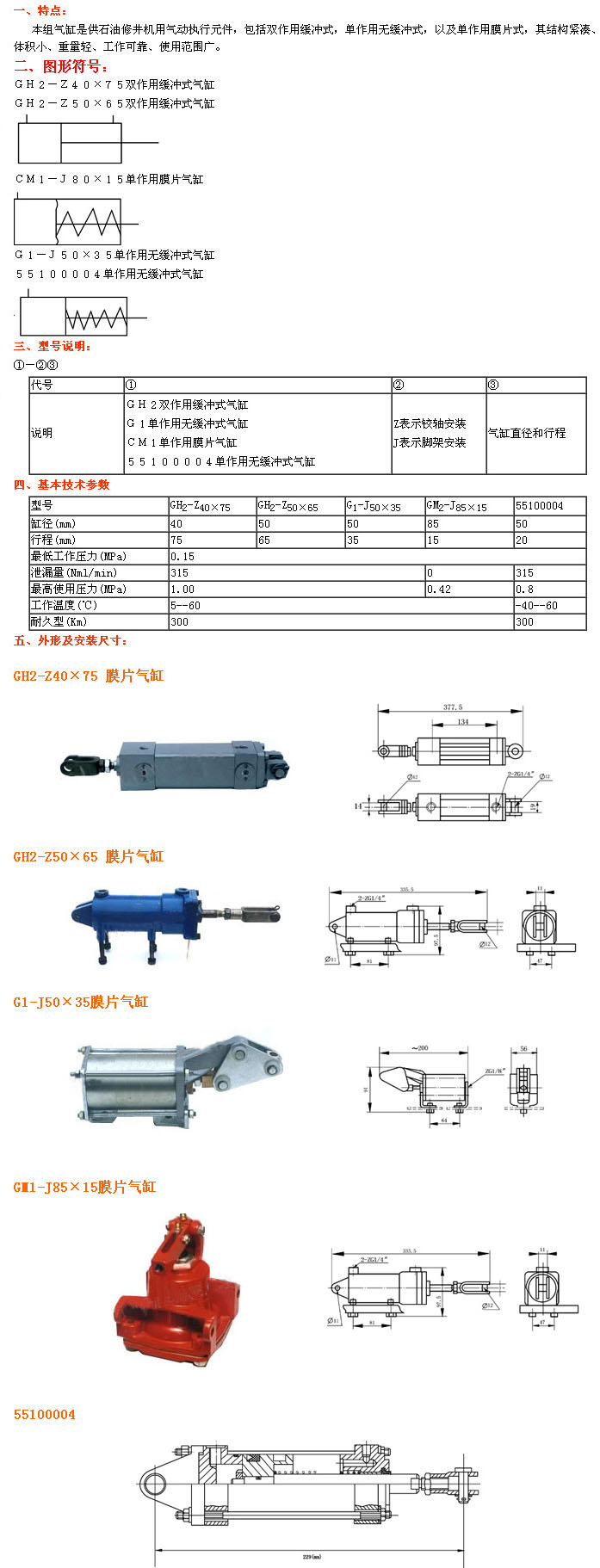 GH2-Z40×75,GH2-Z50×65,G1-J50×35,GM2-J85×15,55100004,石油修井機專(zhuān)用氣缸