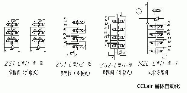 本閥具有公共進(jìn)油口P和回油口T,其油路形式以并聯(lián)油路為主。它與ZS1型多路換向閥相比,具有換向平穩,操縱執行機構(油馬達、油缸等)起閉速度可以隨意控制?;y機能有:O、H、Y、N、J、P等機能。復位方式有:彈簧復位和鋼球復位二種。
