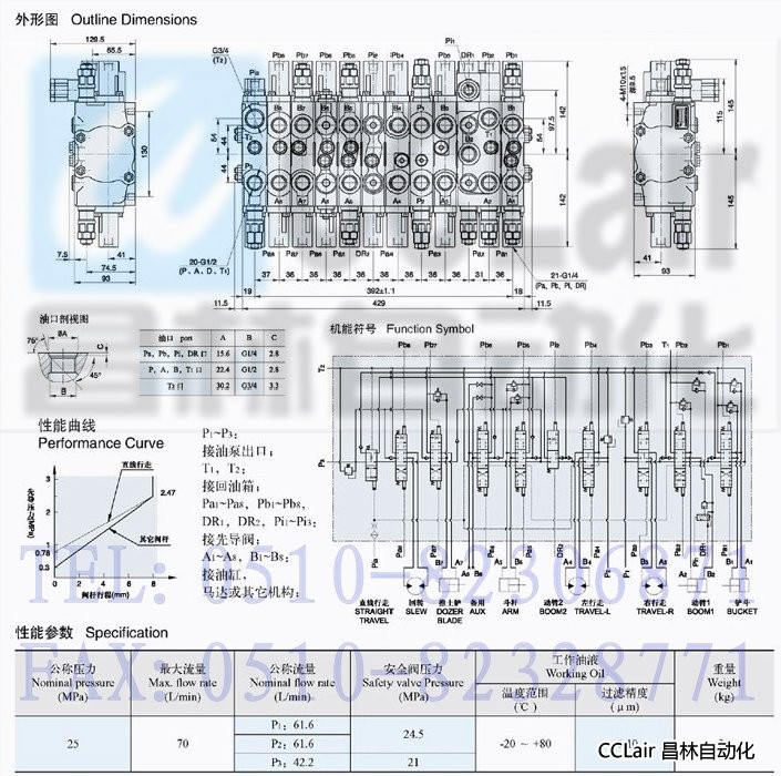 路閥。XYWL-G15L 多路閥應用于三泵液壓系統,三個(gè)主進(jìn)油和一個(gè)低壓泵先導控制油路。該多路閥可實(shí)現動(dòng)臂合流、斗桿合流,提