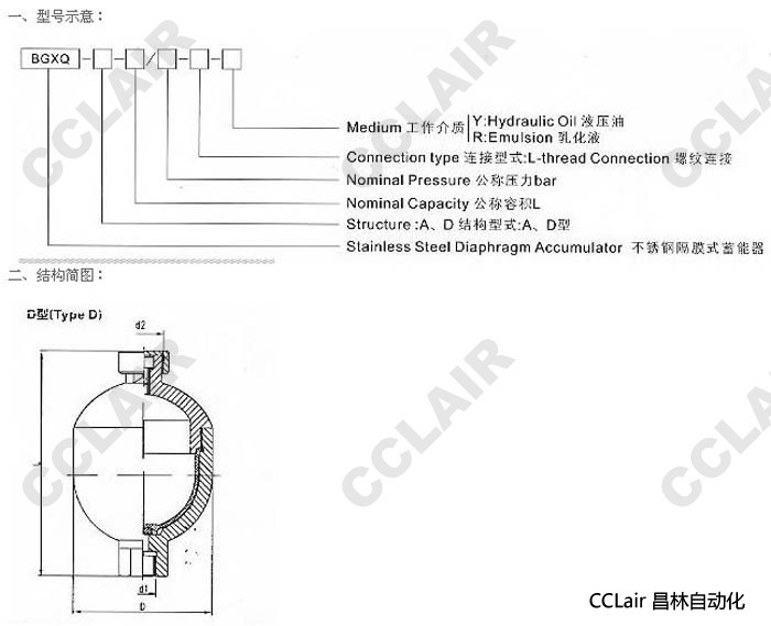 | 流體接口d1 | 充氣口d2 | D | L | ||||