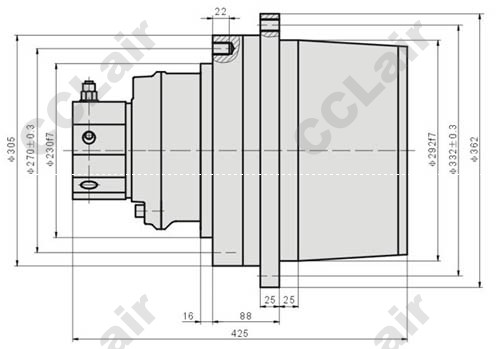| 型 號 | 輸出扭矩N.m | 轉速范圍r/min | 傳動(dòng)比 | 額定壓力Mpa | 總排量 | 液壓馬達 | 總重 | 適用機重ton | |