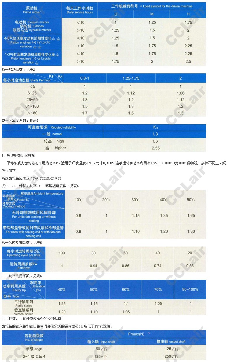 負荷特點(diǎn)(平穩、沖擊、嚴重沖擊),可靠度要求(一般、較高、高)