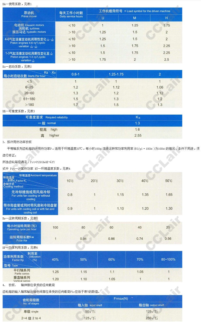 負荷特點(diǎn)(平穩、沖擊、嚴重沖擊),可靠度要求(一般、較高、高)