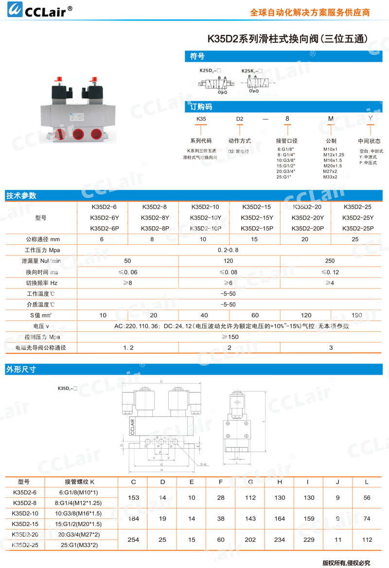 K35D2-6,K35D2-8,K35D2-10,K35D2-15,K35D2-20,K35D2-25,K35D2-25Y,K35D2-25P,三位五通滑柱式換向閥