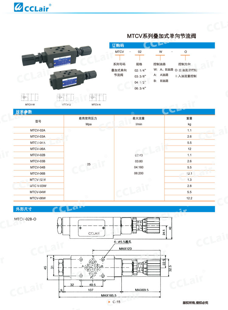 MTCV-02,MTCV-03,MTCV-04,MTCV-06,MTCV-02A,MTCV-03B,MTCV-06W,疊加式單向節流閥
