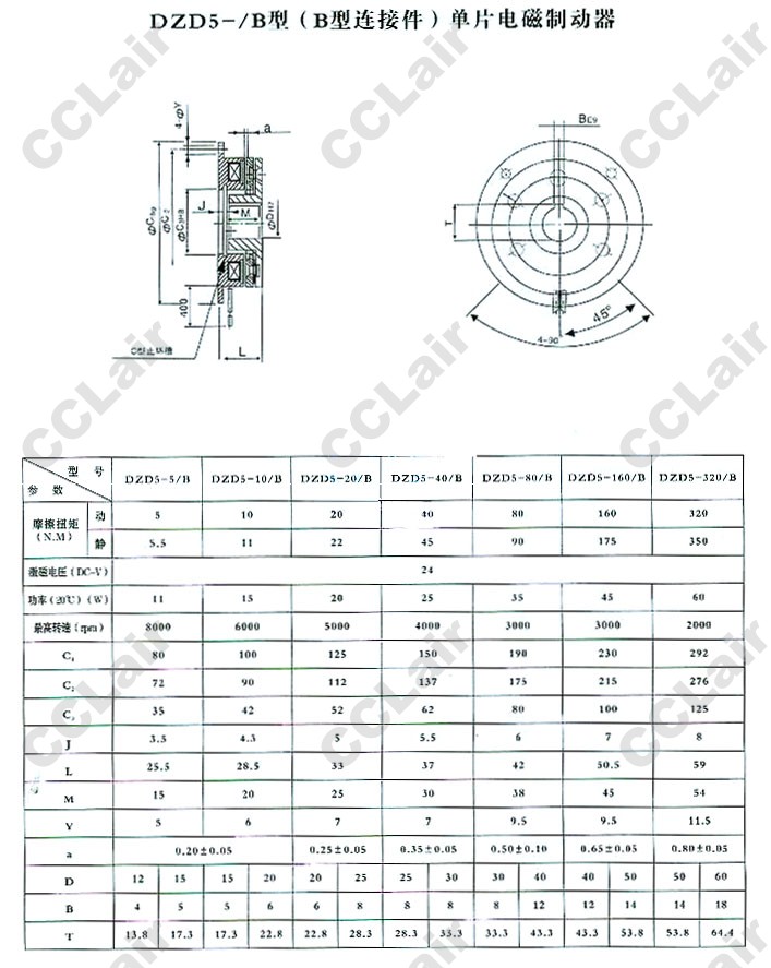 DZD5-5/B,DZD5-10/B,DZD5-20/B,DZD5-40/B,DZD5-80/B,DZD5-160/B,DZD5-320/B,單片電磁制動(dòng)器