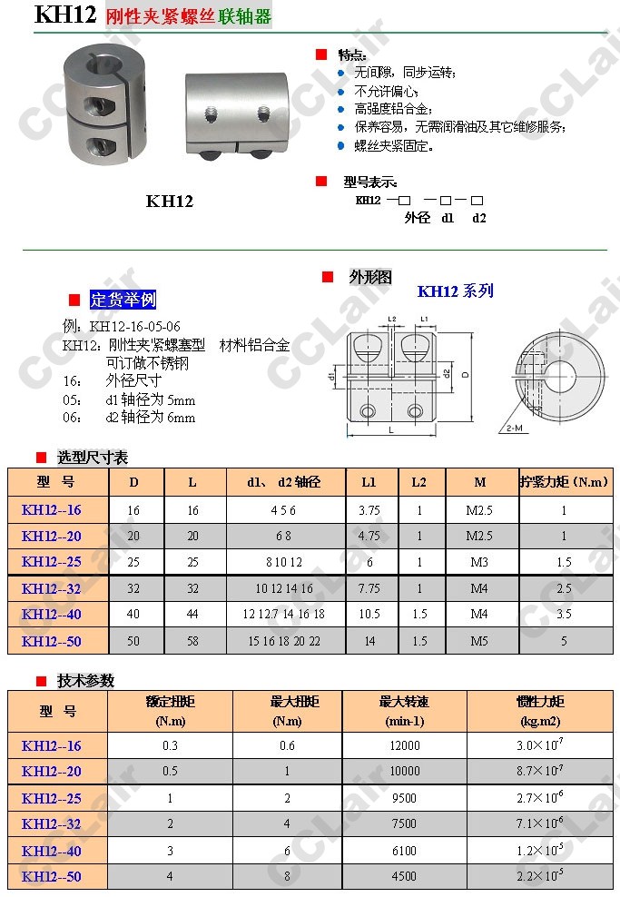 KH12-16,KH12-20,KH12-25,KH12-32,KH12-40,KH12-50,剛性?shī)A緊螺絲聯(lián)軸器