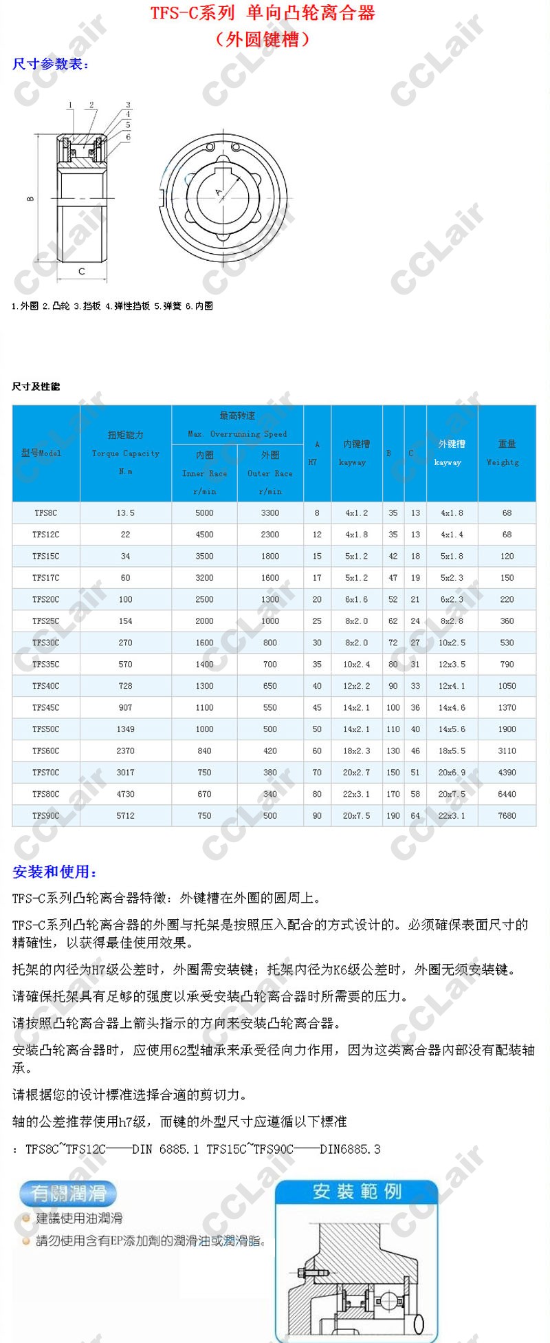 TFS8C,TFS12C,TFS20C,TFS30C,TFS35C,TFS45C,TFS50C,TFS60C,TFS70C,TFS80C,TFS90C,單向凸輪離合器