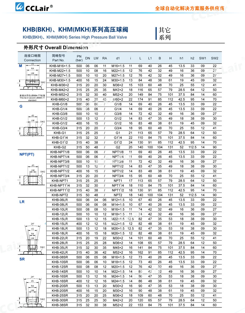 KHB-M12*1.25,KHB-M16*1.5,KHB-M22*1.5,KHB-M27*1.5,KHB-M30*1.5,KHB-M36*2,KHB-M42*2,KHB-M52*2,KHB-M60*2,高壓球閥