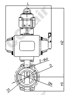 六、SMD671F氣動(dòng)對夾式蝶閥外形圖及安裝尺寸: