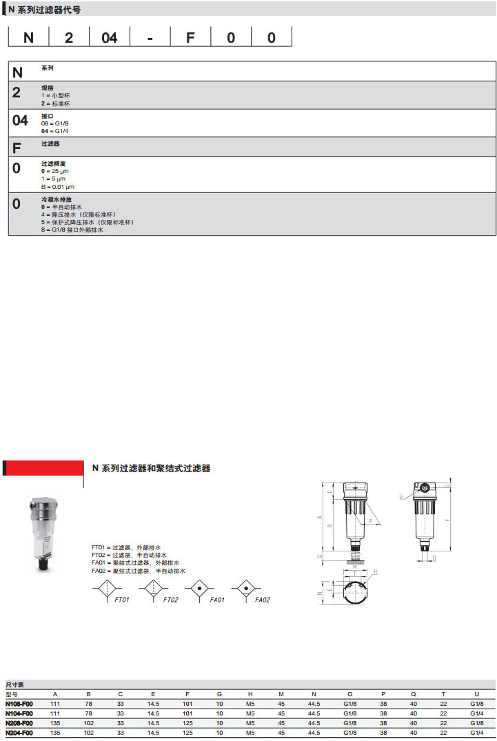 N108-F00,N104-F04,N208-F05,N204-F08,N108-F10,N208-F14,camozzi過(guò)濾器和聚結式過(guò)濾器