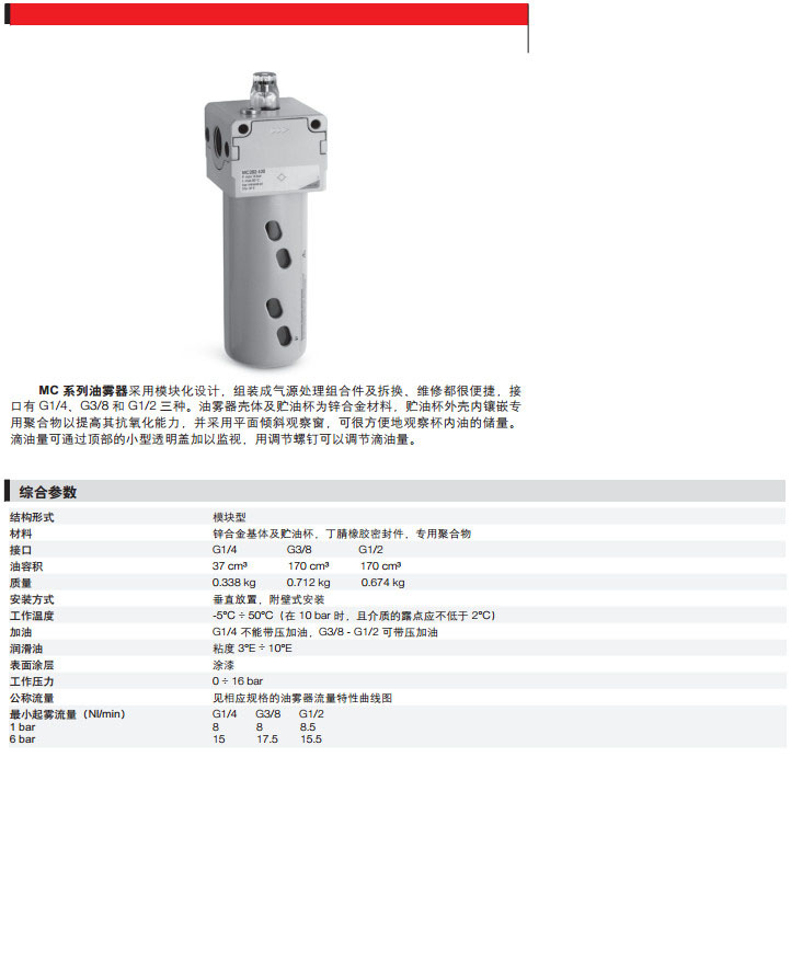 MC104-L00,MC138-L00,MC102-L00,MC204-L00,MC238-L00,MC202-L00,camozzi油霧器