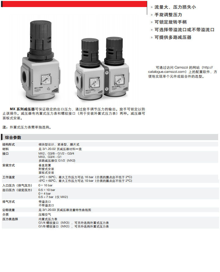 -3/8-R000,MX3-1/2-M402,MX2-3/4-R703,MX3-1-M003,MX3-3/8-R000,camozzi減壓器
