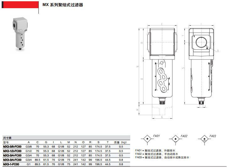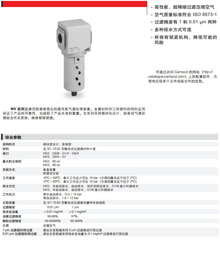 MX2-3/8-FC00,MX2-1/2-FC03,MX3-1/2-FC05,MX3-3/8-FC08,camozzi聚結式過(guò)濾器