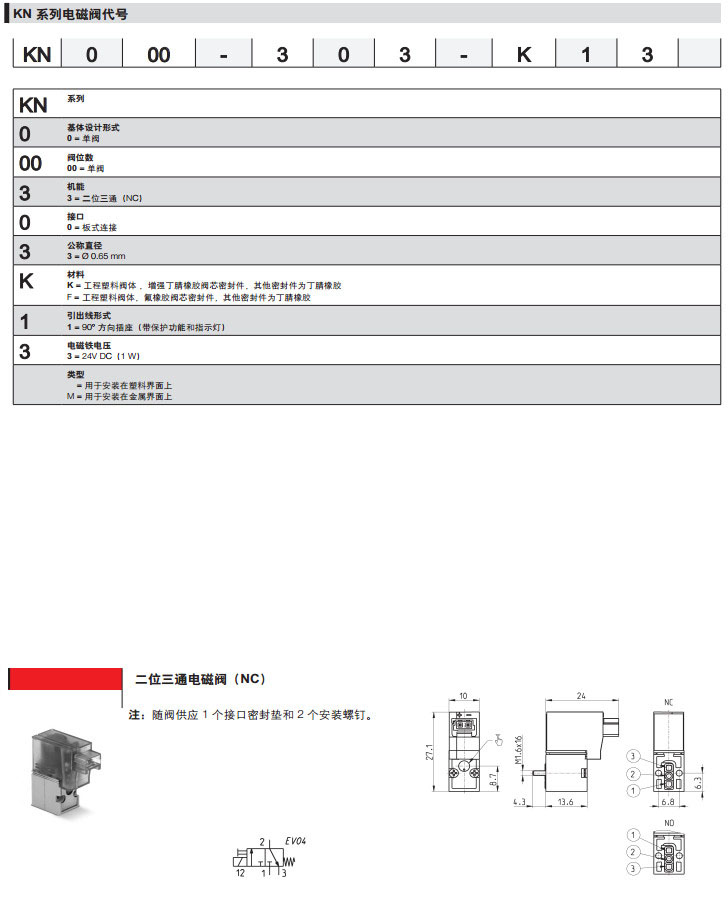 KN000-303-K13,KN000-303-F13,KN000-303-K13M,KN000-303-F13M,camozzi直動(dòng)式微型電磁閥