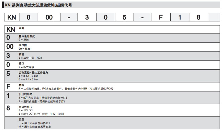 KN000-305-F12,KN000-306-F18,KN000-305-F22M,KN000-306-F28M,camozzi直動(dòng)式大流量微型電磁閥