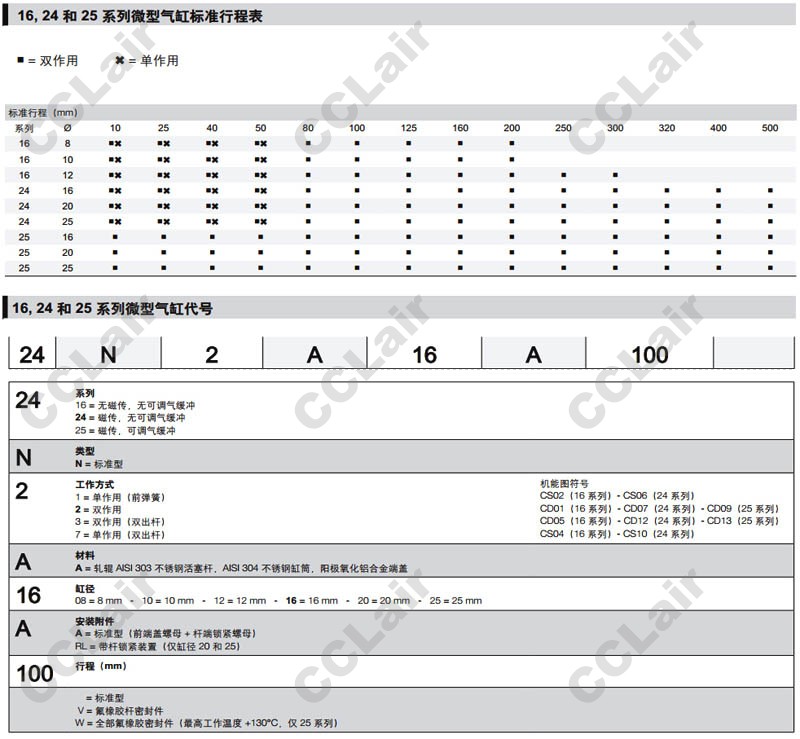 16N1A08A100,16N2A10A100,16N3A12A100,16N7A16A100,16N1A20A100,16N1A20RL100,camozzi微型氣缸