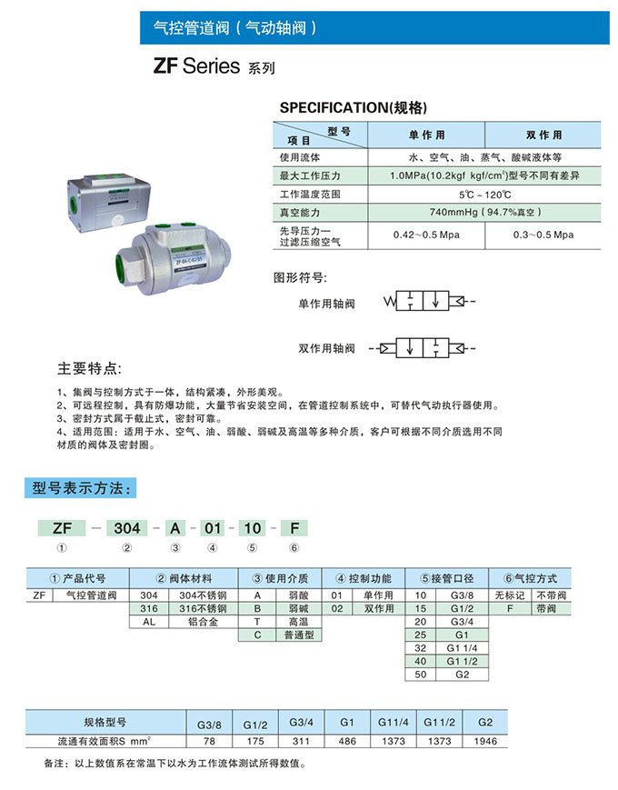 ZF-304,ZF-316,ZF-304-C-02-10,ZF-316-C-02-20,ZF-AL-C-01-32,ZF-316-T-02-20,氣控管道閥