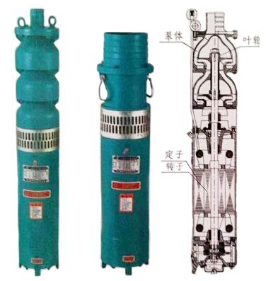 QS型潛水泵由水泵、電機兩大部分組成,水泵位于電泵上部,為離心式結構。電動(dòng)機位于電泵下部,為充水式三相異步電動(dòng)機。充水式電動(dòng)機定子繞組和鐵心直接浸在水中,冷卻效果好,不產(chǎn)生污染,從而突破了其他電泵工作時(shí)“O"形密封圈,機械密封件等滲水到電機腔內的弊端,大大提高了電泵的使用效率。