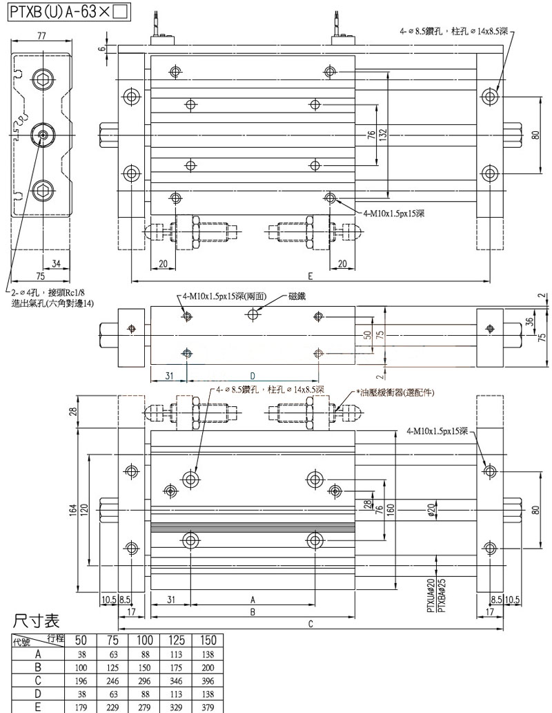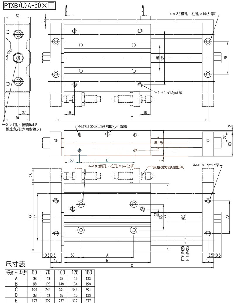 PTXBA-16,PTXBA-20,PTXBA-32,PTXUA-20,PTXUA-32,panix導桿滑臺氣缸