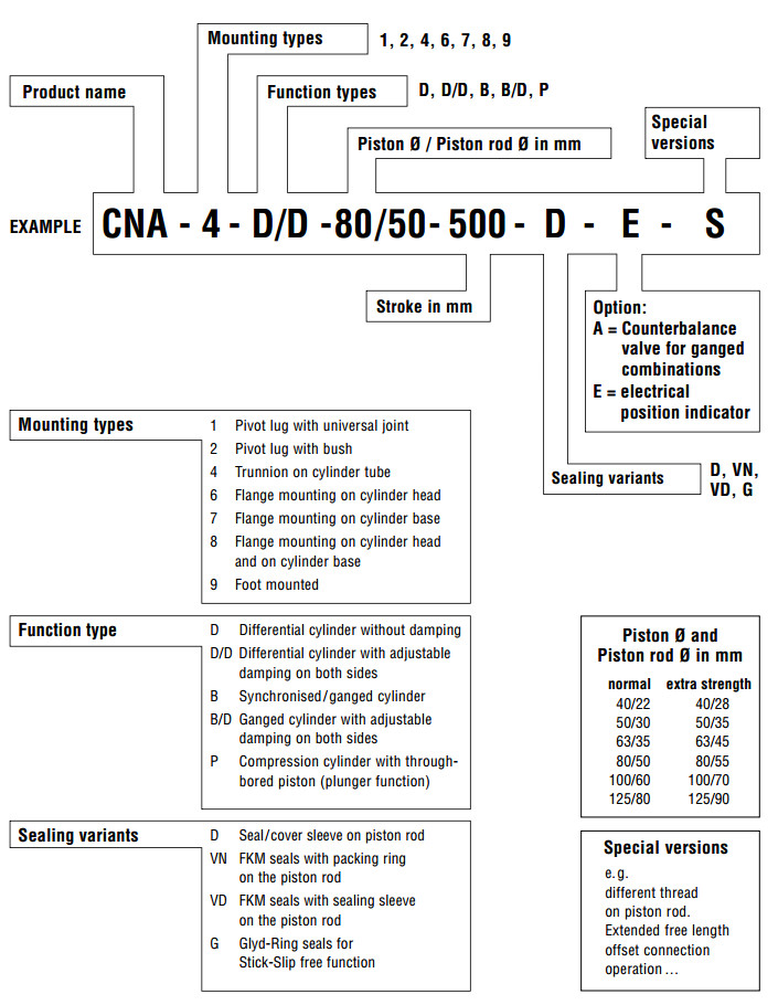 CNA-1,CNA-2,CNA-4,CNA-6,CNA-7,CNA-8,CNA-9-D-40/22-500-D-E-S, kracht液壓缸