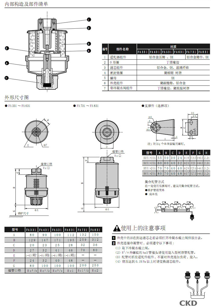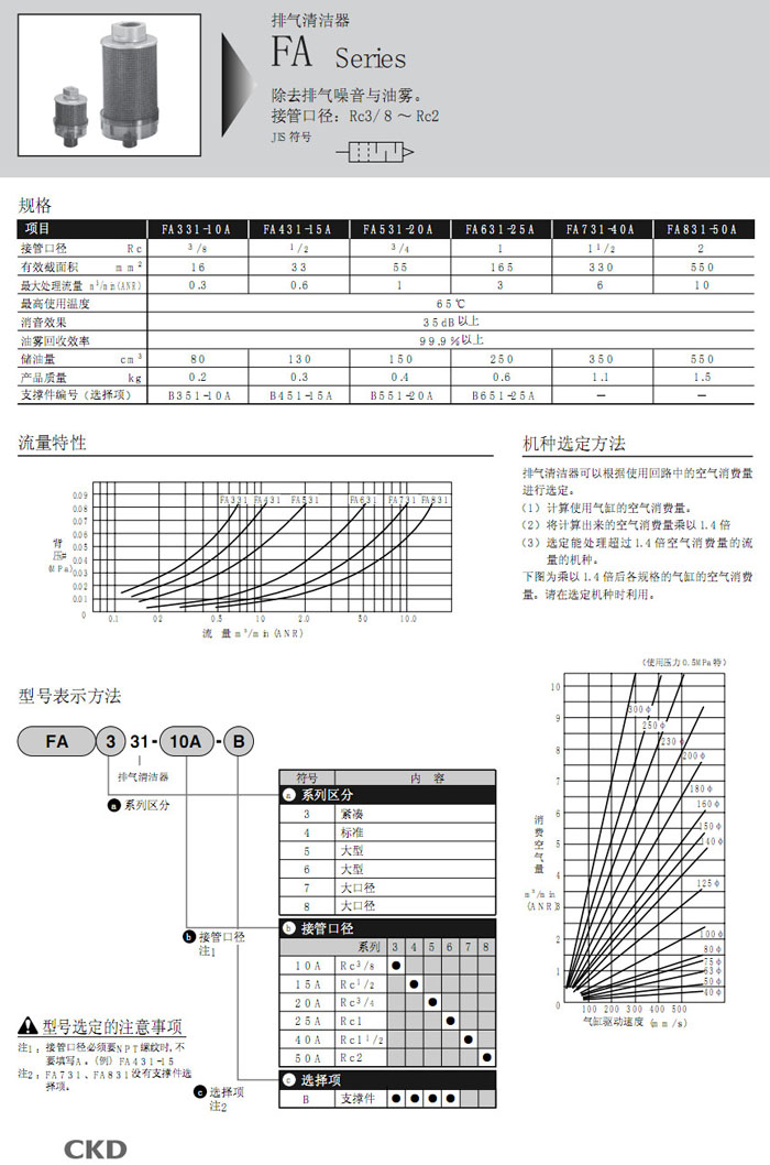 FA331-10A,FA431-15A,FA531-20A,FA631-25A,FA731-40A,FA831-50A,CKD排氣清潔器