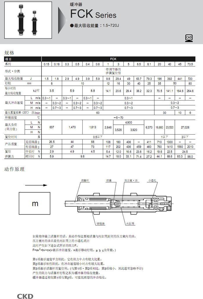 FCK-H-0.18,FCK-H-0.5,FCK-H-0.6,FCK-H-1,FCK-H-3,FCK-H-5,FCK-H-6.5,FCK-H-8.1,CKD緩沖器