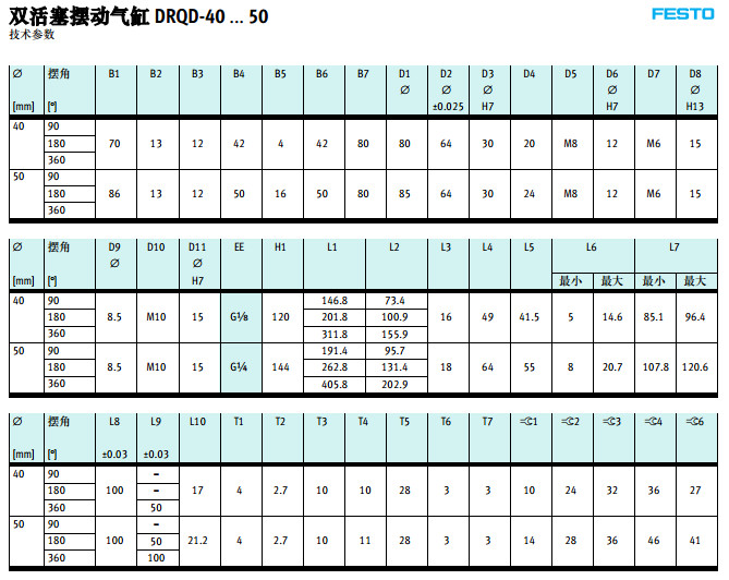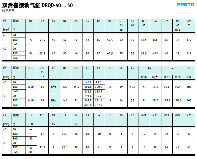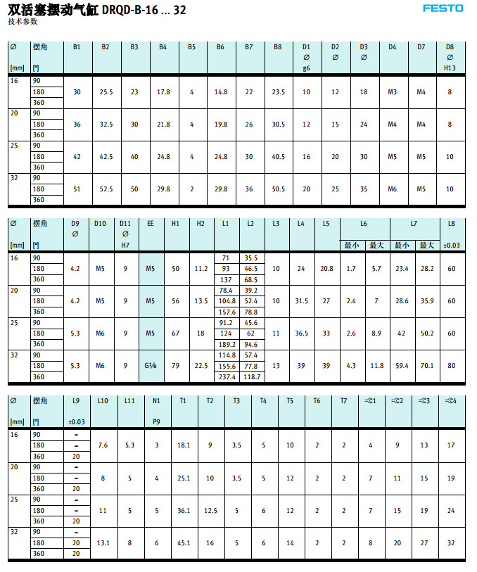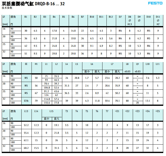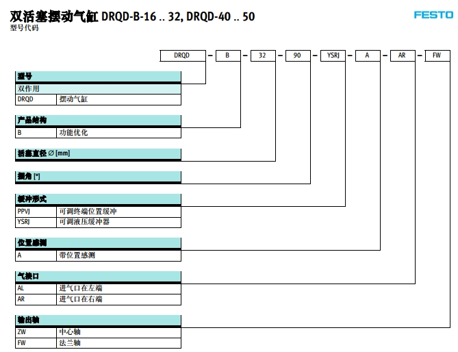 DRQD-B-16,DRQD-B-20,DRQD-B-25,DRQD-B-32,DRQD-B-40,DRQD-B-50,festo擺動(dòng)氣缸