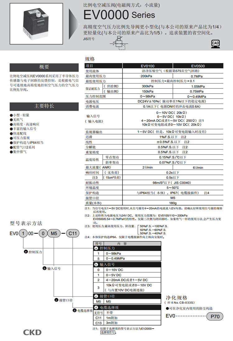 EV0100-0M5,EV0100-1M5,EV0100-2M5,EV0100-3M5,EV0500-0M5,EV0500-1M5,EV0500-2M5,EV0500-3M5,CKD比例電控減壓閥